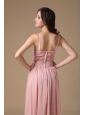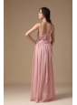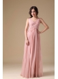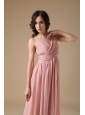 Elegant Peach Pink V-neck Prom Dress Chiffon Ruch