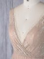 Home >  Bridesmaid Dresses >  Bridesmaid Dresses 2018 > Elegant Peach Zipper V-neck Lace Bridesmaids Dress Tulle Sleeveless