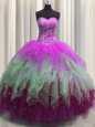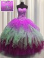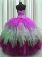 Elegant Pick Ups Zipper Up See Through Back Floor Length Ball Gowns Sleeveless Hot Pink Quinceanera Gown Zipper