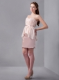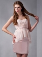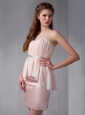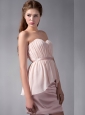 Elegant Pink Column Sweetheart Ruch Bridesmaid Dress Mini-length Chiffon and Satin