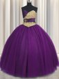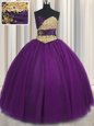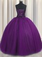 Elegant Purple Lace Up Sweetheart Beading and Appliques Ball Gown Prom Dress Tulle Sleeveless