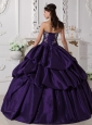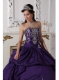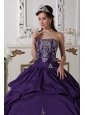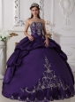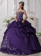 Elegant Purple Quinceanera Dress Strapless Taffeta Embroidery Ball Gown