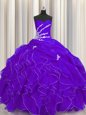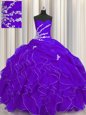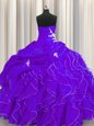 Elegant Purple Sleeveless Floor Length Beading and Appliques and Ruffles Lace Up Quinceanera Gowns