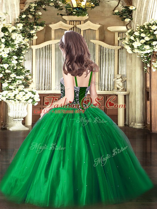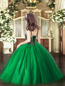 Elegant Purple Sleeveless Floor Length Beading Lace Up Little Girl Pageant Dress