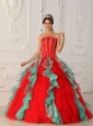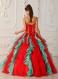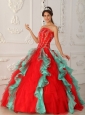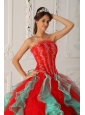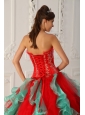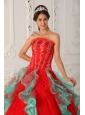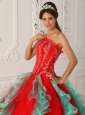 Home >  Quinceanera Dresses >  Unique Quinceanera Dresses > Elegant Red and Green Quinceanera Dress Strapless Appliques and Beading Ball Gown