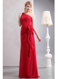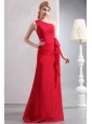 Home >  Bridesmaid Dresses >  Elegant Bridesmaid Dresses > Elegant Red Column One Shoulder Bridesmaid Dress Floor-length Chiffon Ruch