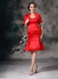 Home >  Special Occasion Dresses >  Mother of the Bride Dresses > Elegant Red Column Sweetherart Mother Of Bride Dress Taffeta Knee-length