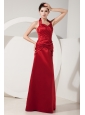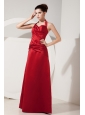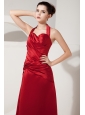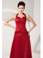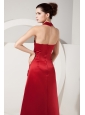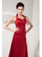 Elegant Red Empire Halter Ruch Bridesmaid Dress Floor-length Satin