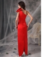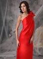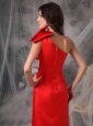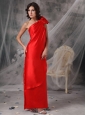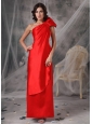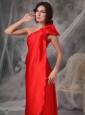 Elegant Red Evening Dress Column One Shoulder Elastic Woven Satin Ruched Floor-length