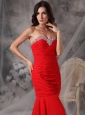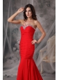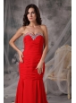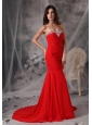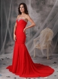 Elegant Red Mermaid / Trumpet Evening Dress Sweetheart  Chiffon Beading Court Train
