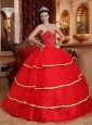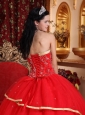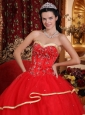 This red quinceanera dress is the uniquely perfect choice to show your beauty. It features a sweetheart neckline and exquisite embellishment.The bouffant skirt with a contrasting colored hem flows freely to create like a booming flower.The lace up back completes this so gorgeous design.