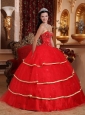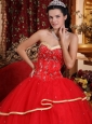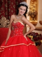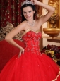 Elegant Red Quinceanera Dress Sweetheart Satin and Tulle Beading Ball Gown