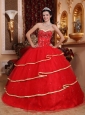 Home >  Quinceanera Dresses >  Fashionable Quinceanera Dresses > Elegant Red Quinceanera Dress Sweetheart Satin and Tulle Beading Ball Gown