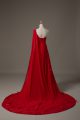 Elegant Red Sleeveless Watteau Train Hand Made Flower Prom Dresses