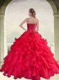 Elegant Red Strapless Quinceanera Dress with Ruffles and Beading