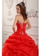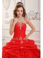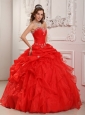 Home >  Quinceanera Dresses >  Sweet 16 Dresses > Elegant Red Sweet 16 Dress Strapless Organza Beading And Ruffles Ball Gown
