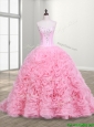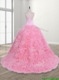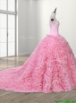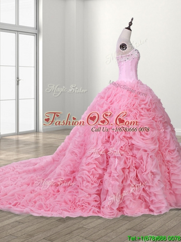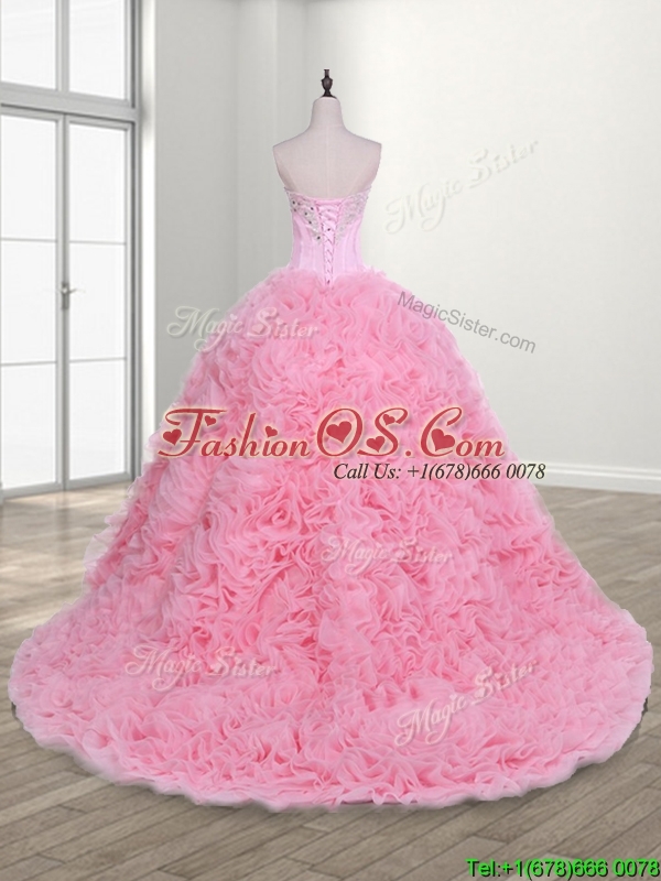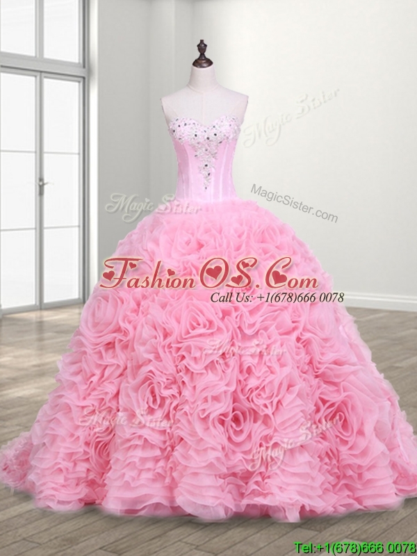 Elegant Rolling Flowers and Beaded Quinceanera Dress with Court Train