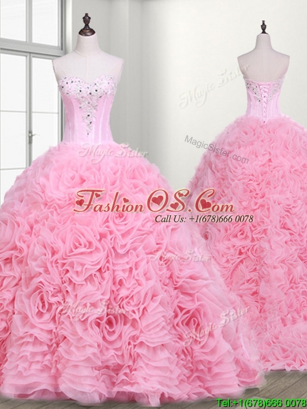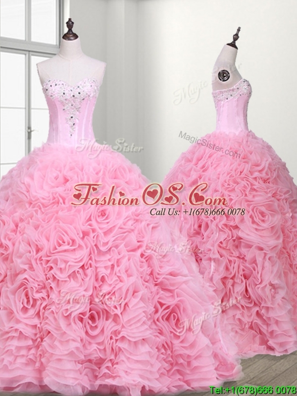 Home >  Quinceanera Dresses >  Fast Delivery Quinceanera Dresses > Elegant Rolling Flowers and Beaded Quinceanera Dress with Court Train