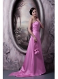 Elegant Rose Pink Bridesmaid Dress A-line / Princess Strapless Satin Bow Brush Train
