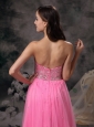 Attending evening party or other formal occasion, you will catch others' eye once you wear this charming dress. This pink prom dress features strapless with sweetheart neckline. The outlayer tulle was encrusted with glittery beading and sequins, which draw more interest to this part. The back of this angelic dress has zipper up closure and the skirt is complete with brush train.