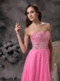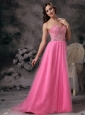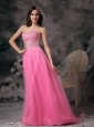 Silhouette: Empire Neckline: Sweetheart Waist: Fitted Hemline/Train: Brush Train Sleeve Length: Sleeveless Embellishment: Beading Back Detail: Zipper-up Fully Lined: Yes Built-In Bra: Yes Fabric: Taffeta and Tulle Shown Color: Rose Pink(Color & Style representation may vary by monitor.) Occasion: Prom, Formal Evening, Celebrity, Graduation Season: Spring, Summer, Fall, Winter