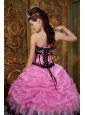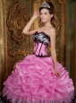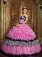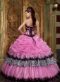 Elegant Rose Pink Quinceanera Dress Strapless Picks-Up Organza and Zebra Ball Gown