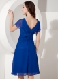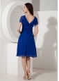 Elegant Royal Blue Mother of the Bride Dress Empire V-neck Chiffon Ruched Knee-length