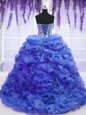 Elegant Royal Blue Quince Ball Gowns Sweetheart Sleeveless Sweep Train Lace Up