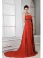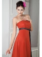 Elegant Rust Red Column Strapless Prom / Homecoming Dress Chiffon Sash  Brush Train