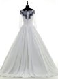 Home >  Wedding Dresses >  Perfect Wedding Dresses > Elegant Scalloped White 3|4 Length Sleeve Chiffon Brush Train Zipper Wedding Gown for Wedding Party