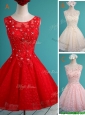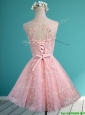 Elegant Scoop Beading and Appliques Short Bridesmaid Dresses in Baby Pink