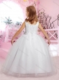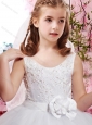 Elegant Scoop Handcrafted Flower and Applique Flower Girl Dress in Tulle
