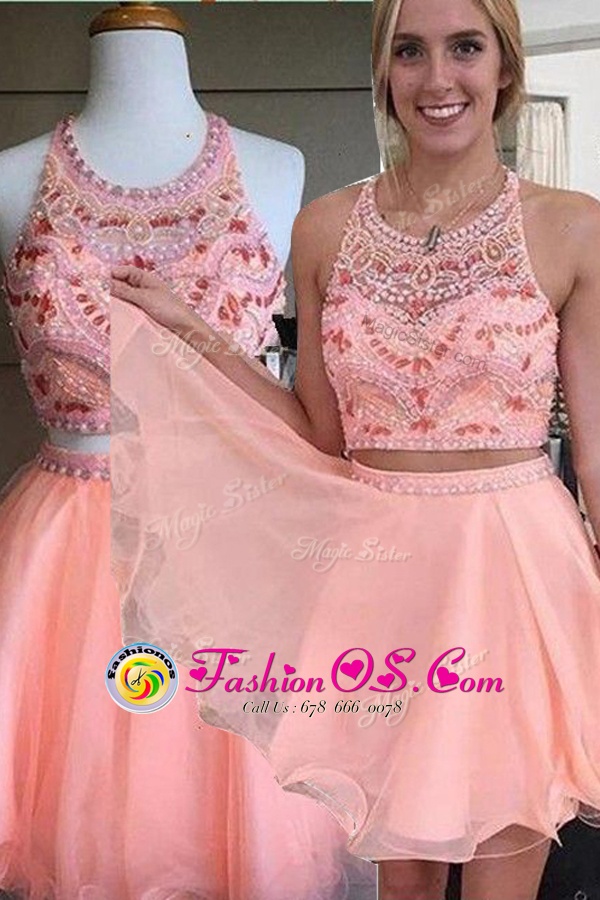 Elegant Scoop Sleeveless Chiffon Beading Backless