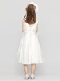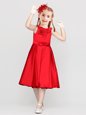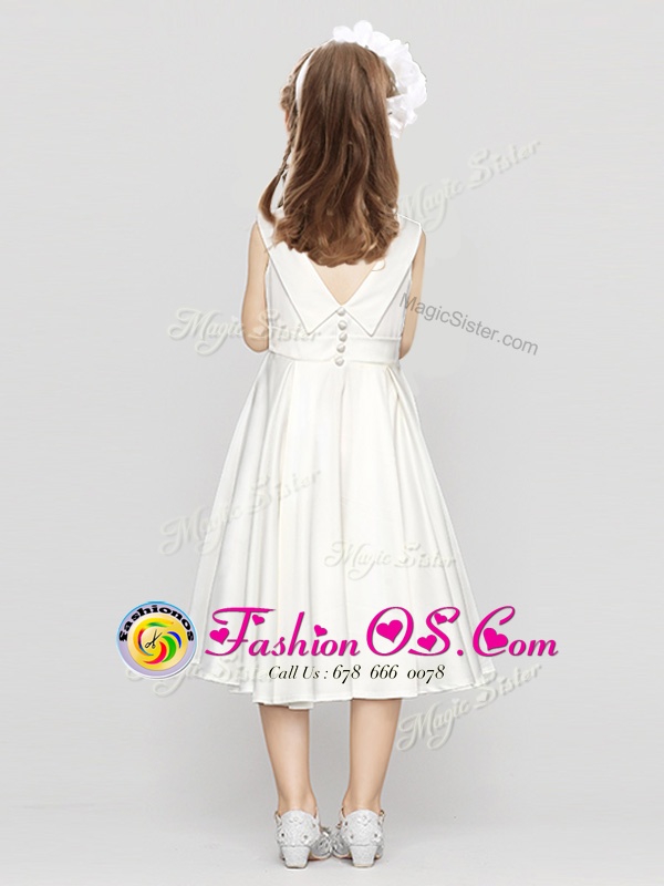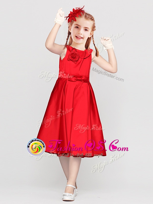 Elegant Scoop Sleeveless Clasp Handle Tea Length Bowknot and Hand Made Flower Flower Girl Dresses