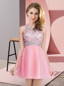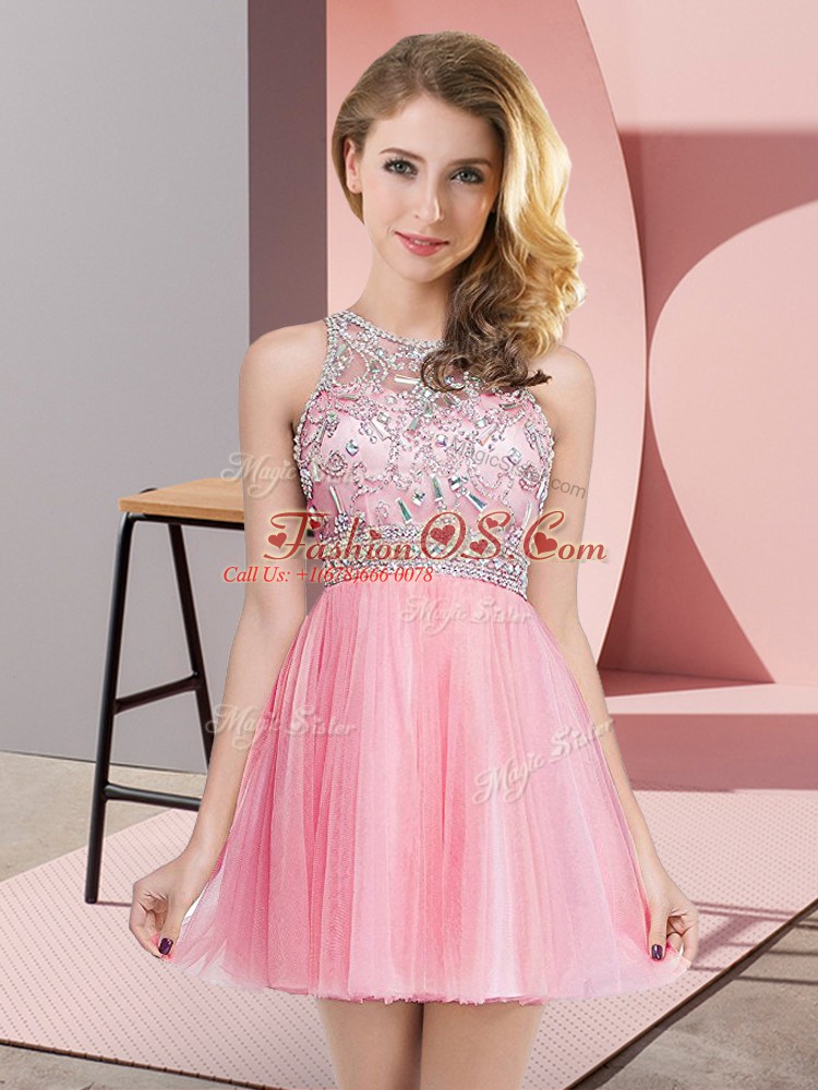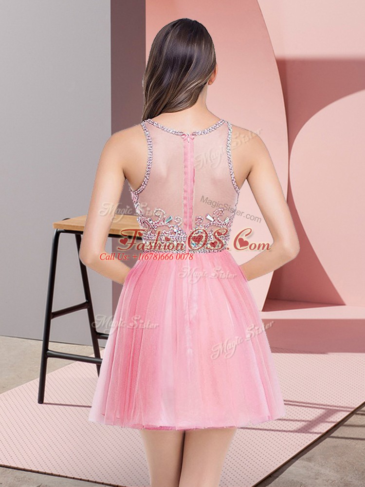 Elegant Scoop Sleeveless Zipper Evening Dress Rose Pink Tulle