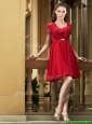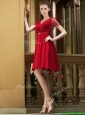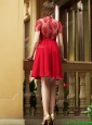 Elegant See Through Back Red Short Bridesmaid Dresses with Short Sleeves