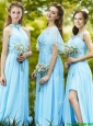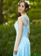 Elegant See Through Scoop Appliques Prom Dresses in Light Blue