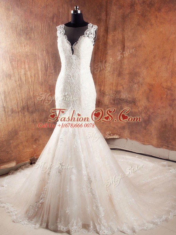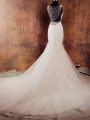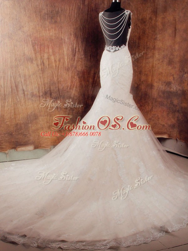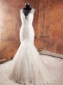 Elegant Side Zipper Wedding Gowns White for Wedding Party with Beading and Lace Court Train