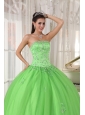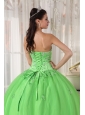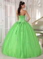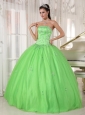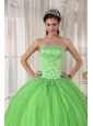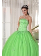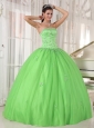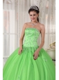 Elegant Spring Green Quinceanera Dress Strapless Taffeta and Tulle Appliques Ball Gown