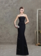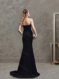 Home >  Evening Dresses > Elegant Strapless Column Black Evening Dress with Brush Train