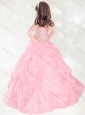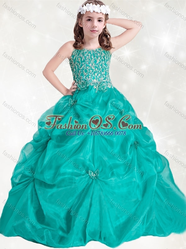 Elegant Straps Really Puffy Little Girl Pageant Dress with Beading and Pick Ups