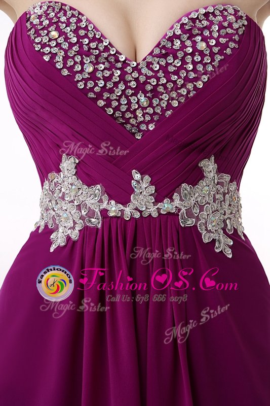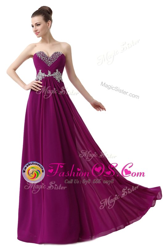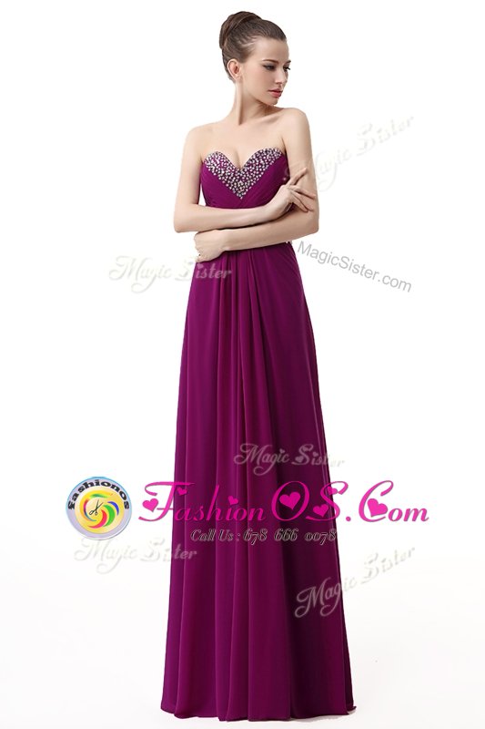 Home >  Prom Dresses >  Perfect Prom Dresses > Elegant Sweetheart Sleeveless Floor Length Beading and Ruching Purple Chiffon