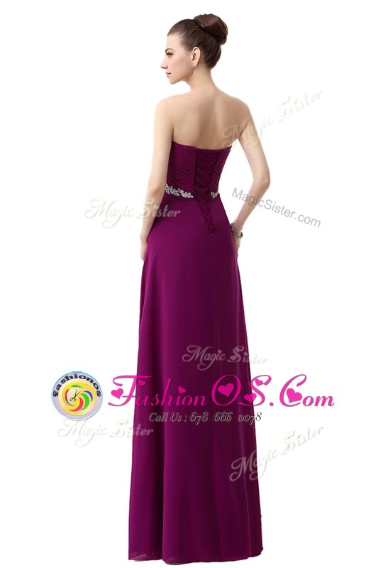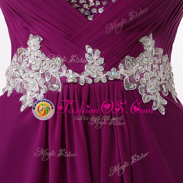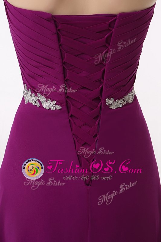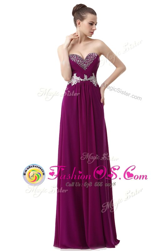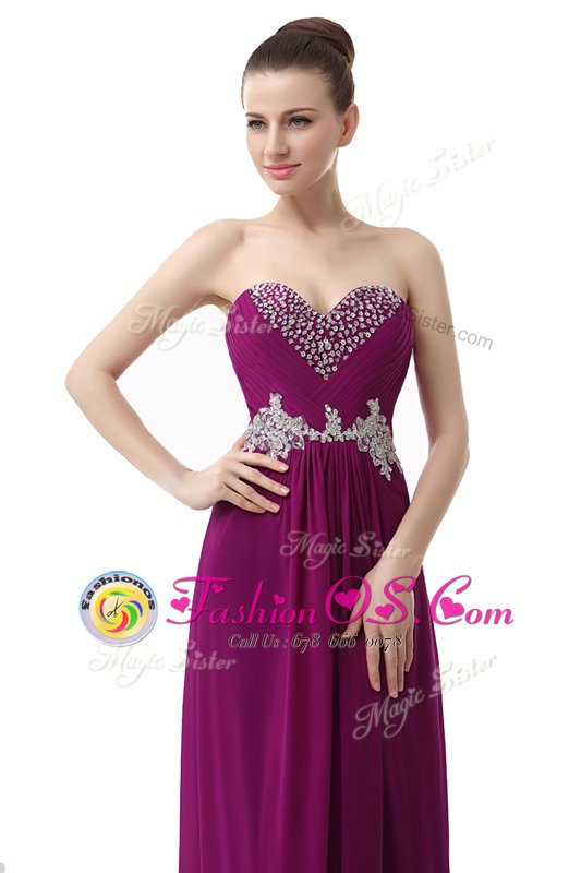 Elegant Sweetheart Sleeveless Floor Length Beading and Ruching Purple Chiffon
