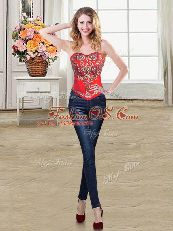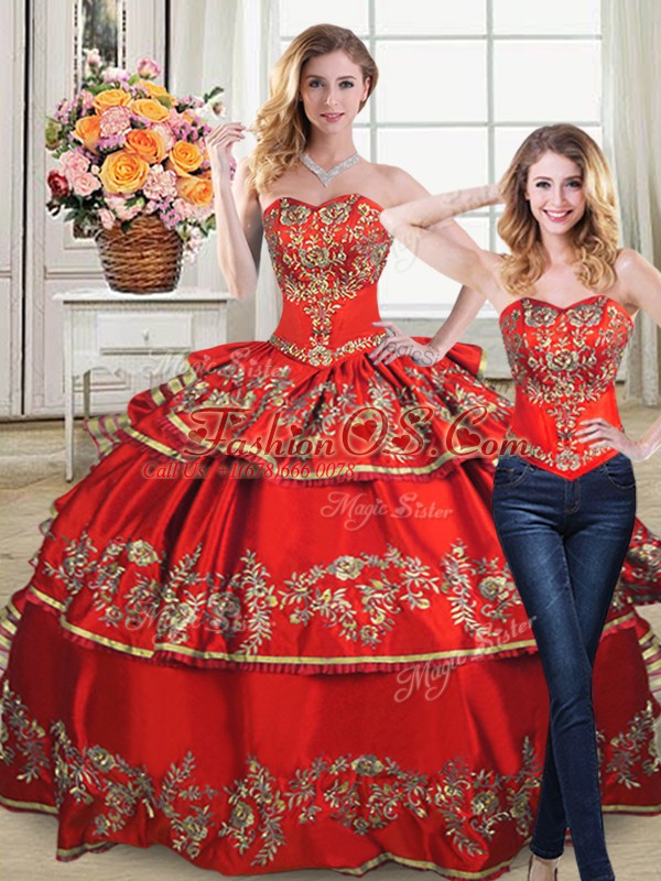 Elegant Sweetheart Sleeveless Satin and Organza Ball Gown Prom Dress Embroidery and Ruffled Layers Lace Up