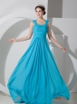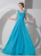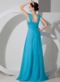 Home >  Prom Dresses >  Cheap Prom Dresses > Elegant Teal Empire Square Prom Dress Chiffon Ruch Brush Train