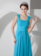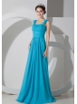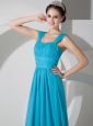 Elegant Teal Empire Square Prom Dress Chiffon Ruch Brush Train