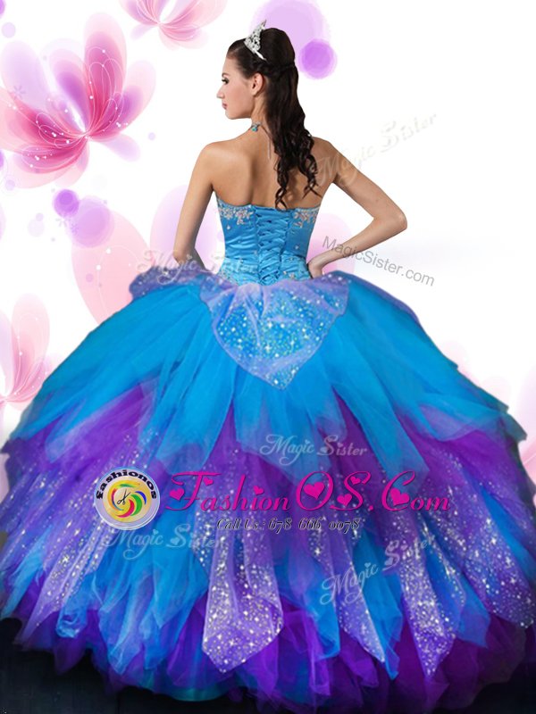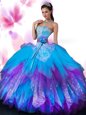 Home >  Quinceanera Dresses >  In Stock Quinceanera Dresses > Elegant Tulle Sleeveless Floor Length Quince Ball Gowns and Appliques and Ruffled Layers and Hand Made Flower