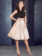 Home >  Special Occasion Dresses >  Cocktail Dresses > Elegant Two Piece Open Back Prom Dress in Champagne and Black