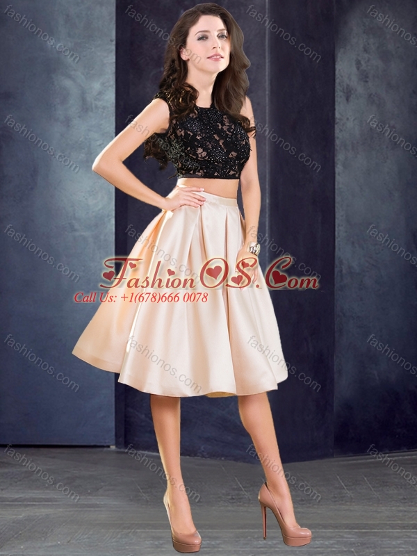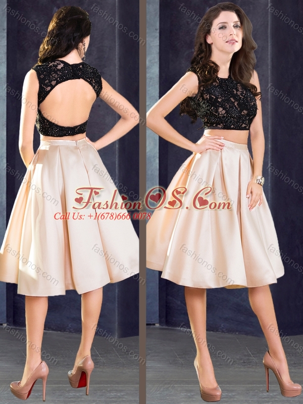 Elegant Two Piece Open Back Prom Dress in Champagne and Black