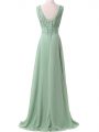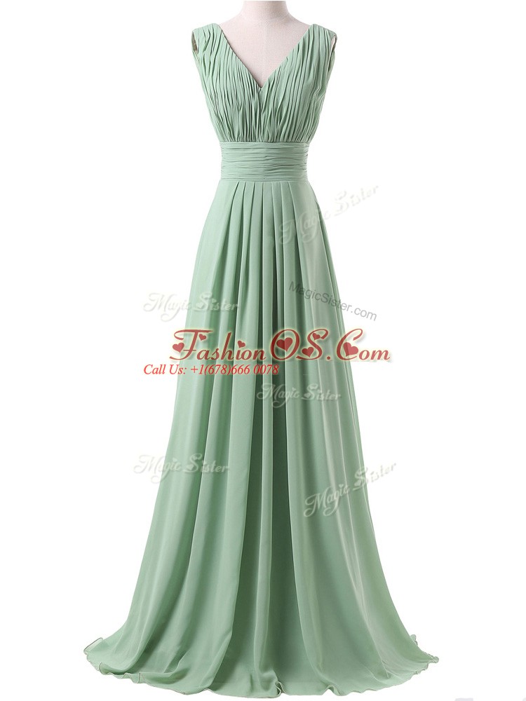 Elegant V-neck Sleeveless Lace Up Wedding Guest Dresses Apple Green Chiffon